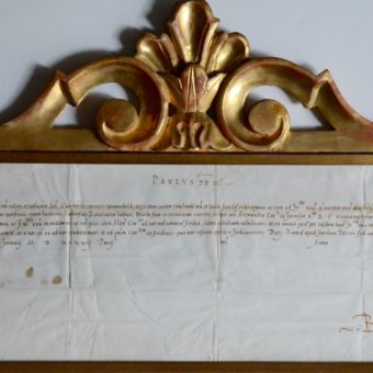Très rares annotations autographes de Brantôme sur un brevet signé par Henri III octroyant l’évêché de Périgueux