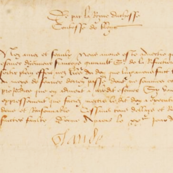 Rare lettre du duc Charles II de Savoie, à sa soeur Philiberte de Savoie duchesse de Nemours, vers 1520.