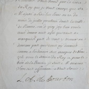 Lettre du duc de Vendôme, rédigée par Campistron, durant le siège de Verrue Savoia