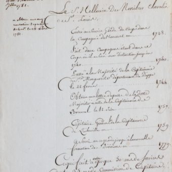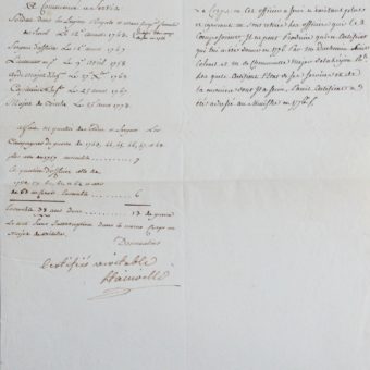 Certificat d’états de service d’un officier, signé par le maréchal de Stainville
