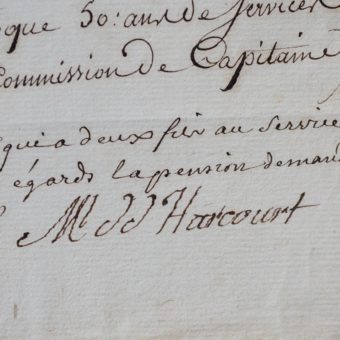 États de service d’Hellouin de Menibus certifiés par le maréchal d’Harcourt