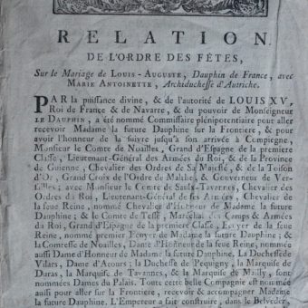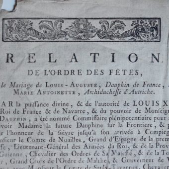 Rarissime imprimé de mai 1770, relatif au mariage de Marie-Antoinette