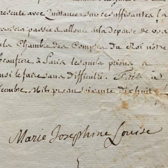 Mémoire des frais d’employés de bouche, signé par la comtesse de Provence, Marie-Joséphine de Savoie