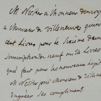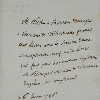 Jacques Necker participe à une souscription pour les « nouveaux hôpitaux »