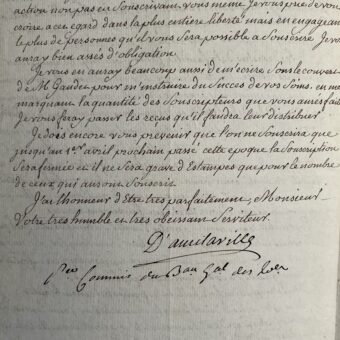 Très rare lettre de l’inventeur Jacques Vaucanson sur les manufactures de soie d’Aubenas et de Lavaur