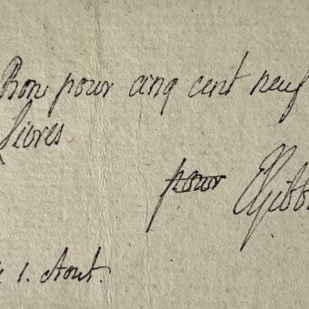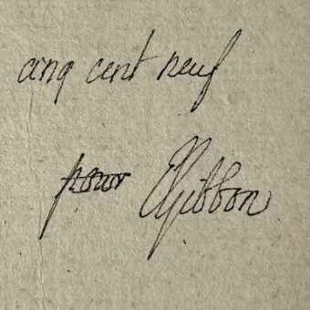 Quittance autographe signée de l’historien anglais Edward Gibbon au verso d’une carte à jouer