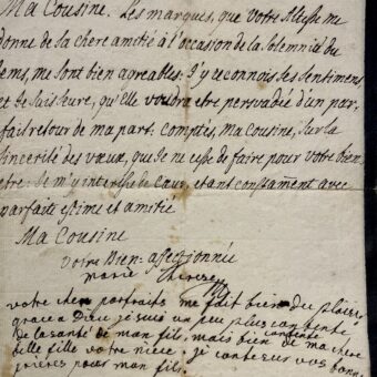 Lettre de l’Impératrice Marie-Thérèse d’Autriche avec 5 lignes autographes