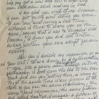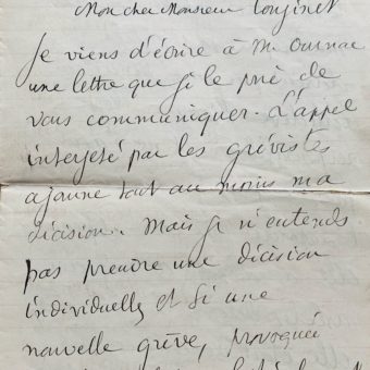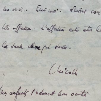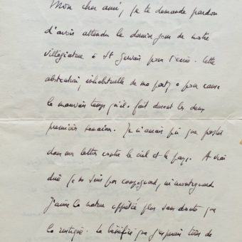 Lettre d’Henri Matisse adressée à la veuve de son ami le peintre Thorndike, à Nice