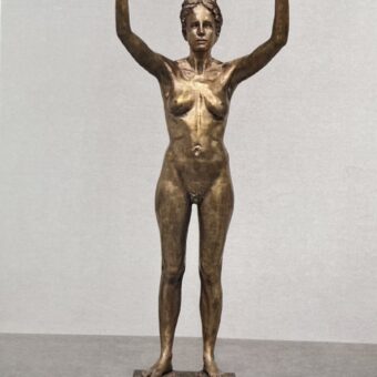 Jean-Michel Folon, posant devant son « Grand oiseau », adresse ses remerciements