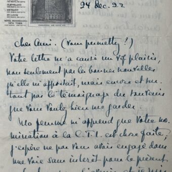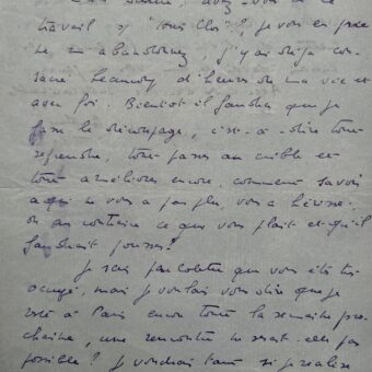Rare et importante lettre du cinéaste Jean Vigo sur sa rencontre avec Germaine Dulac et son mariage