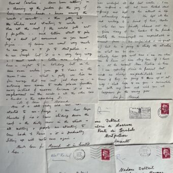 Ensemble de 3 lettres de la poétesse et artiste Meraud Guinness Guevara à Caroline Delteil