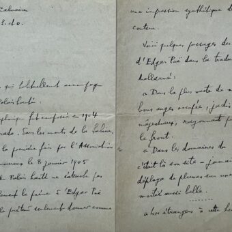 Intéressante lettre de Florent Schmitt sur son étude symphonique « Le Palais hanté », tirée d’E.A. Poe, créée en 1904