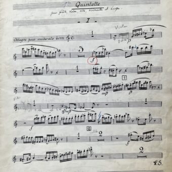 Manuscrit musical complet du premier quintette d’Henri Martelli pour cordes, flûte et harpe