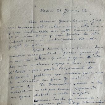 Belle et rare lettre de la cinéaste Jacqueline Audry à Jean-Paul Sartre, au sujet de l’adaptation de Huis Clos