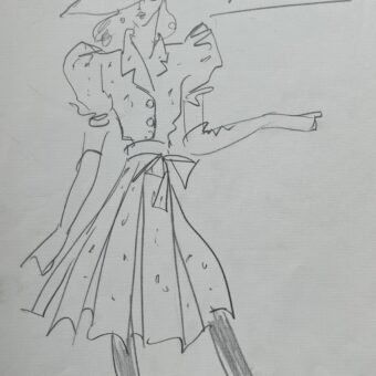 Très beau dessin d’Yves Saint-Laurent figurant une élégante aux courses