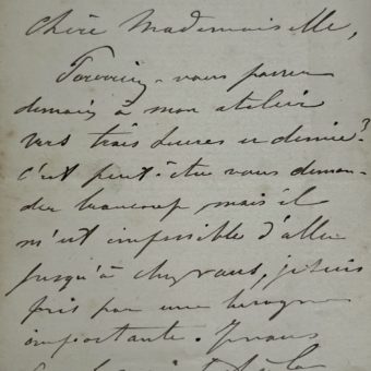 Très belle lettre de Mary Cassatt à Camille Pissarro sur son activité artistique