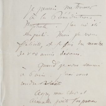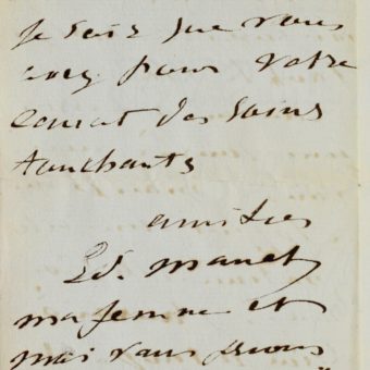 Très rare lettre d’Edouard Manet adressée à son grand ami Stéphane Mallarmé