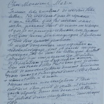 Ossip Zadkine négocie les conditions d’une exposition de sculptures en Tchécoslovaquie