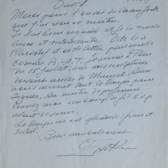 Rare lettre de Paul Jouve sur ses lithographies de panthères, tigres, etc.