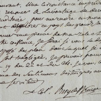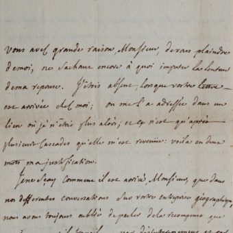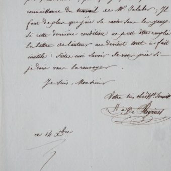 Lettre du navigateur Louis de Freycinet à Nicolas Noirot, de la Société de Géographie