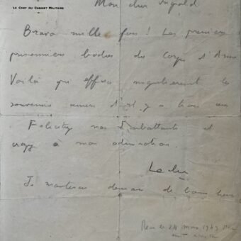 Lettre de 1935 de Charles de Gaulle qui salue un texte « fort amusant, un peu amer, fort bien écrit »