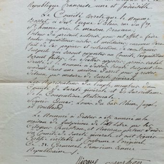 Lettre du conventionnel montagnard Antoine Bonnier d’Alco depuis le Congrès de Rastadt, où il fut assassiné