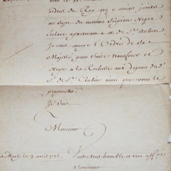 Maurepas envoie un esclave de M. de St Aubin, à La Rochelle