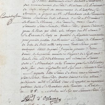 Document signé par Philippe Égalité, les Princes de Condé et de Conti et Bathilde d’Orléans