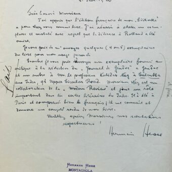 Hermann Hesse regrette l’omission de la dédicace à Romain Rolland de la traduction de Siddhartha