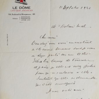 2 lettres de Jean Paulhan à Renée Dunan évoquant Han Ryner et Batouala de René Maran