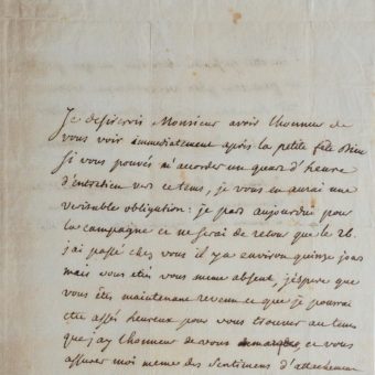 Rares lettre et manuscrit de Pierre Charles Cosson adressés à Justine Favart