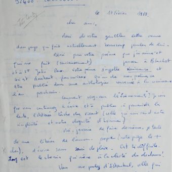 3 lettres de Francis Ponge au philosophe Yvon Belaval