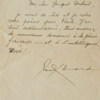 Félicitations dithyrambiques d’Éluard au poète Jacques Dubois