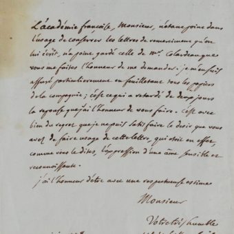 D’Alembert recherche en vain une lettre Colardeau dans les archives de l’Académie française