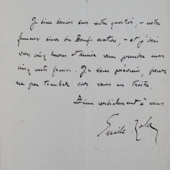 Belle lettre d’Alfred Jarry à Henry Durand-Davray évoquant un travail avec Claude Terrasse