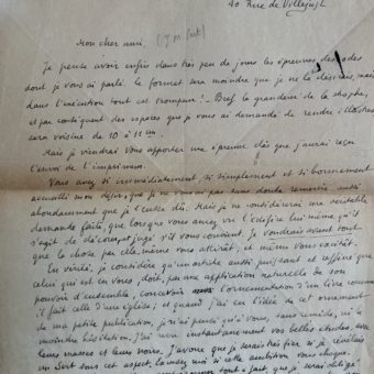 Enthousiaste lettre de Paul Valéry au sujet de l’illustration des ‘Odes’