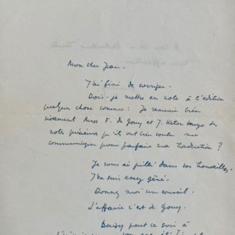Lettre de Maurice Sachs à Jean Hugo au sujet de la traduction de ‘Young Visiters’ de Daisy Ashford