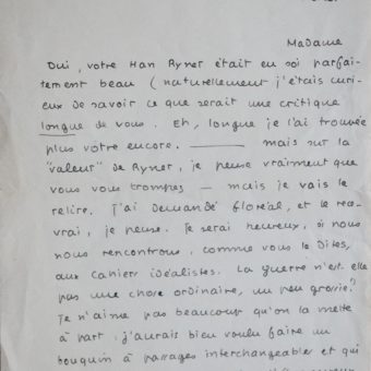 2 lettres de Jean Paulhan à Renée Dunan évoquant Han Ryner et Batouala de René Maran