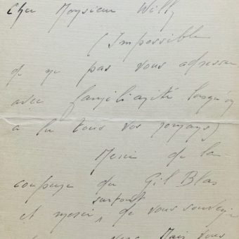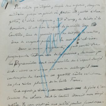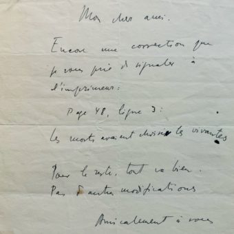 Manuscrit du « Prière d’insérer » de Simone de Beauvoir pour « Les Mandarins » qui recevra le prix Goncourt