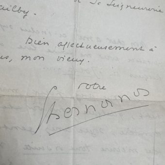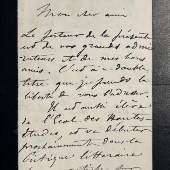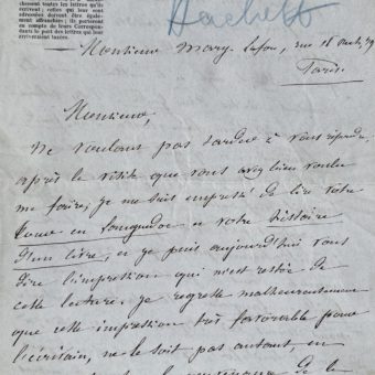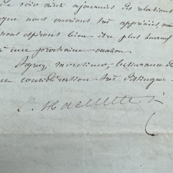 Billet autographe de l’essayiste américain Washington Irving lors de son séjour en France