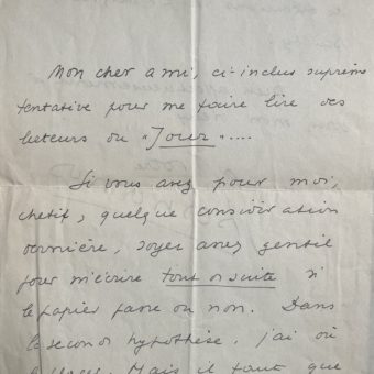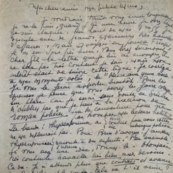 Lettre de Guillaume Apollinaire à Philippe Soupault, soigné à l’hôpital, en 1918