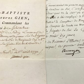 Deux documents rédigés à bord du vaisseau l’Illustre, en Martinique, en 1790