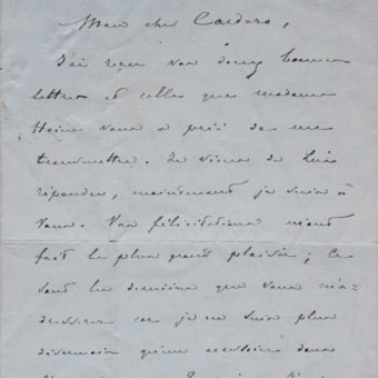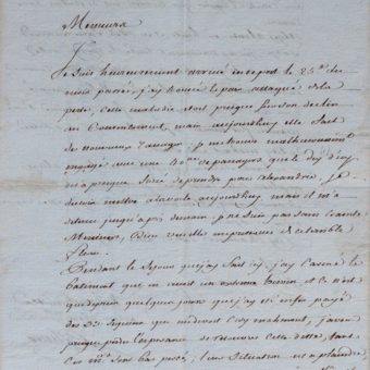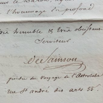 Lettre du peintre de l’expédition de l’Astrolabe (commandée par Dumont d’Urville), Louis-Auguste de Sainson