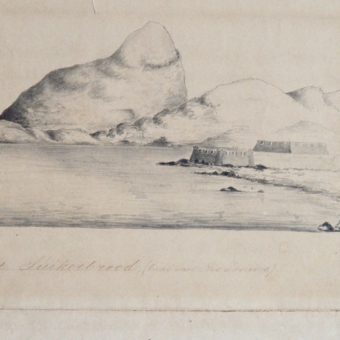Dessin original du Cap de Bonne-Espérance vu de la mer, daté de 1855