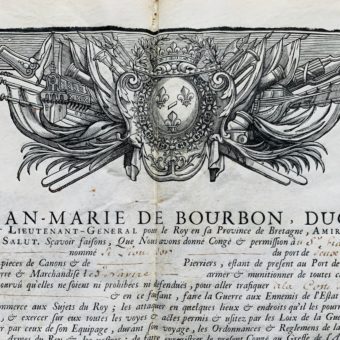 Colbert de Seigneley autorise la vente des marchandises provenant de la capture deux vaisseaux anglais en 1690