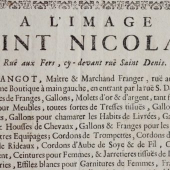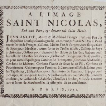 Jean Angot, vend Gallons et passementerie au XVIIIe s.