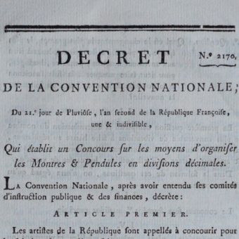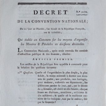 La Convention nationale veut un « concours sur les moyens d’organiser les montres & pendules »