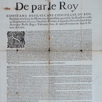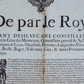 Affiche de 1683 sur les manufactures de dorure à Lyon et en Savoie