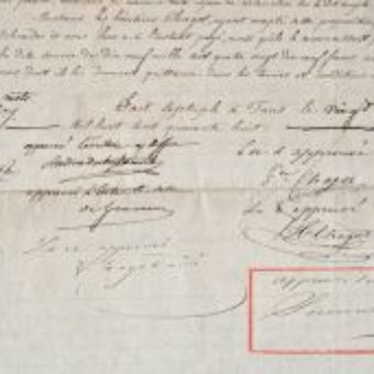 Toussaint Rose signe un contrat d’apprentissage avec un maître tapissier.