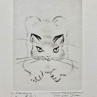 Lettre d’André Hambourg illustrée d’une eau-forte originale d’un chat